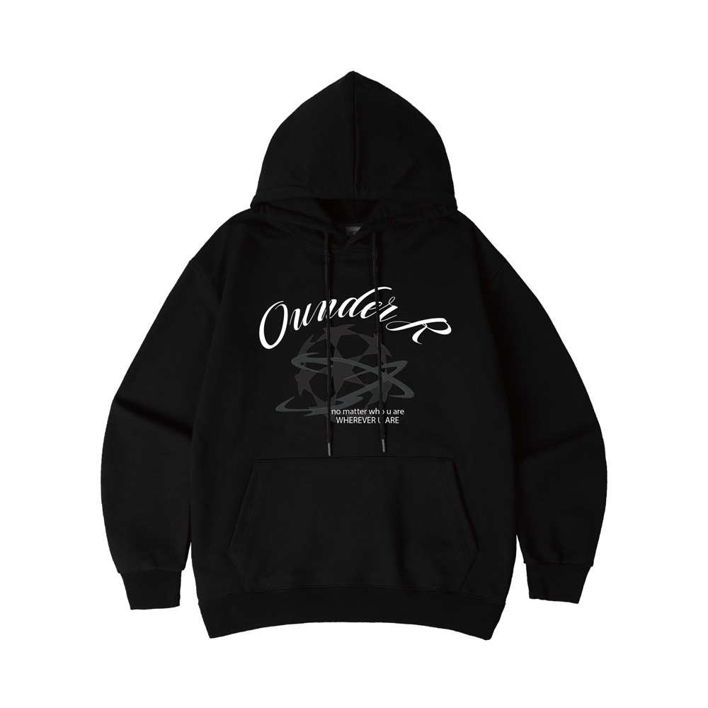 오버핏 후드 배색 엠보자수 후드 블랙(FCF3TS645M)