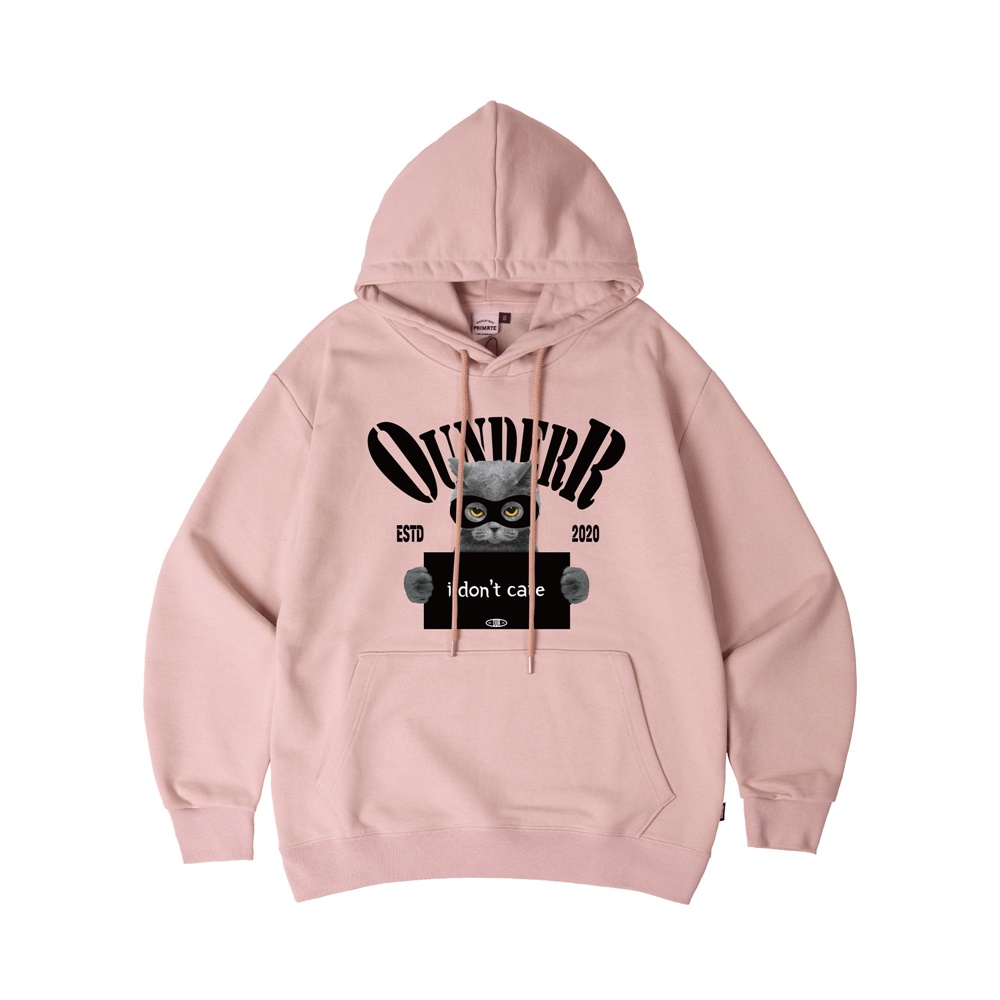 RIDING BIKE CAT 오버핏 후드 티셔츠 (멜란지 그레이)