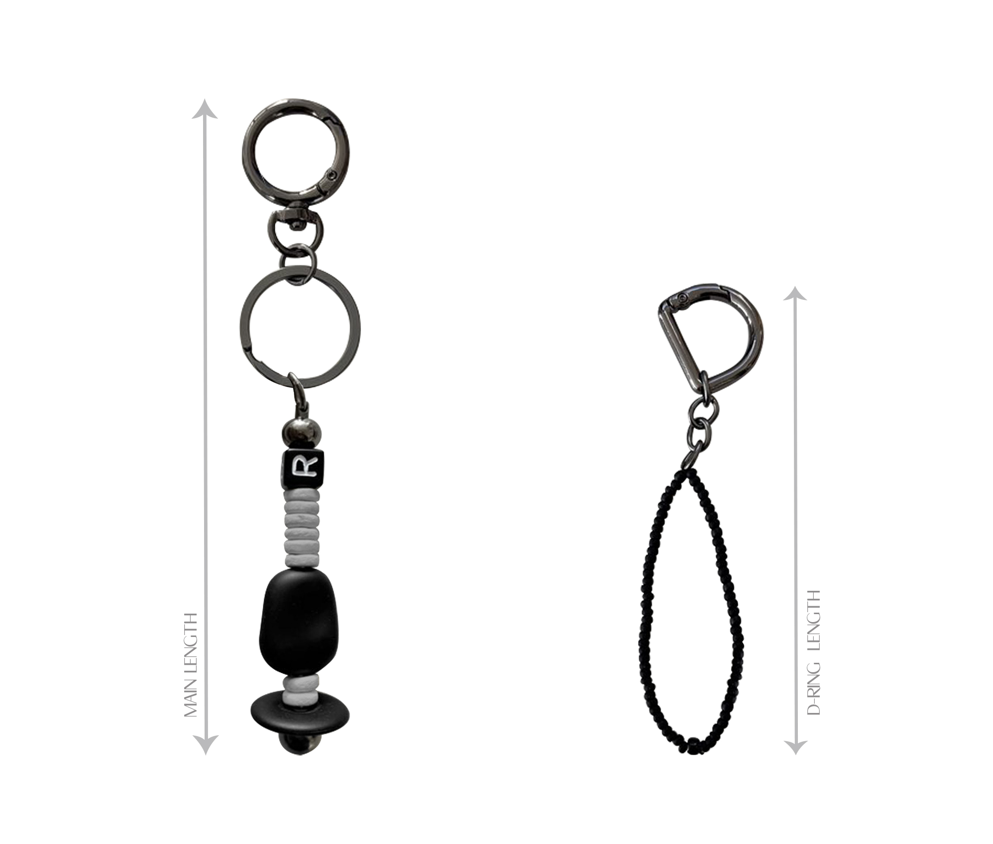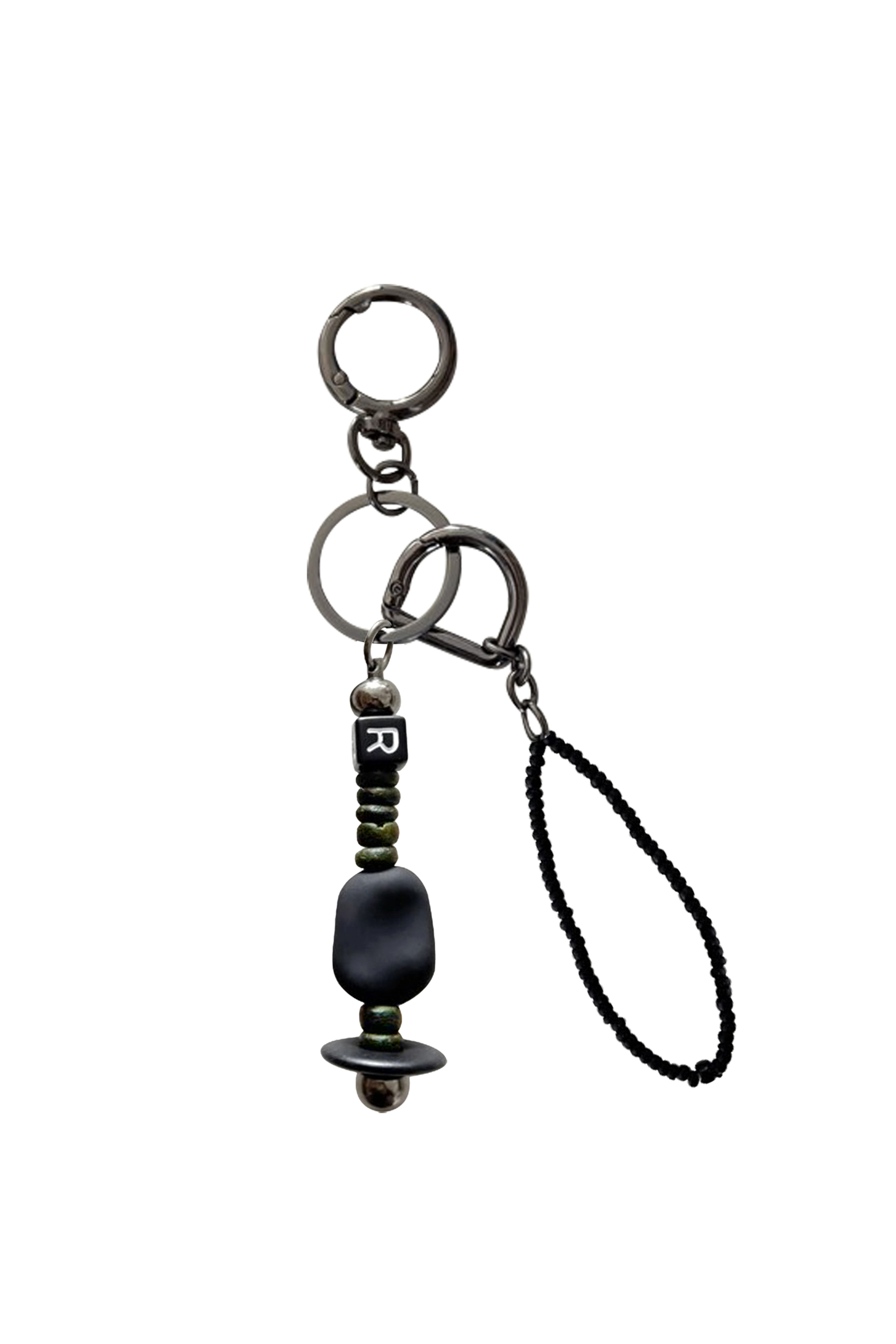 - 블랙니켈 바디에 우드+아크릴 비즈 믹스로 디자인 된 키링