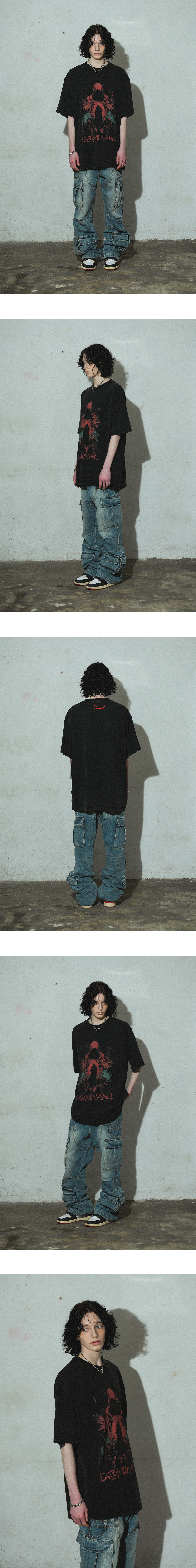 Wild 스파이더웹 피그먼트 오버핏 반팔 티셔츠_5 COL