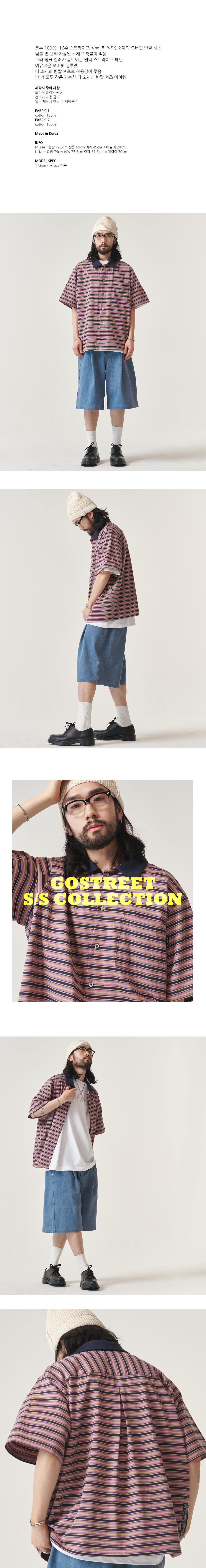 16수 싱글 오버핏 스트라이프 셔츠 그레이