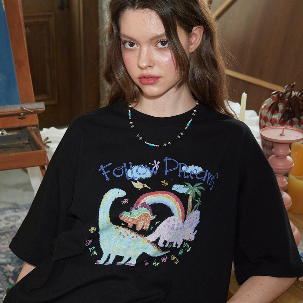 Wild 로큰롤 냥이 피그먼트 오버핏 반팔 티셔츠_7 COL