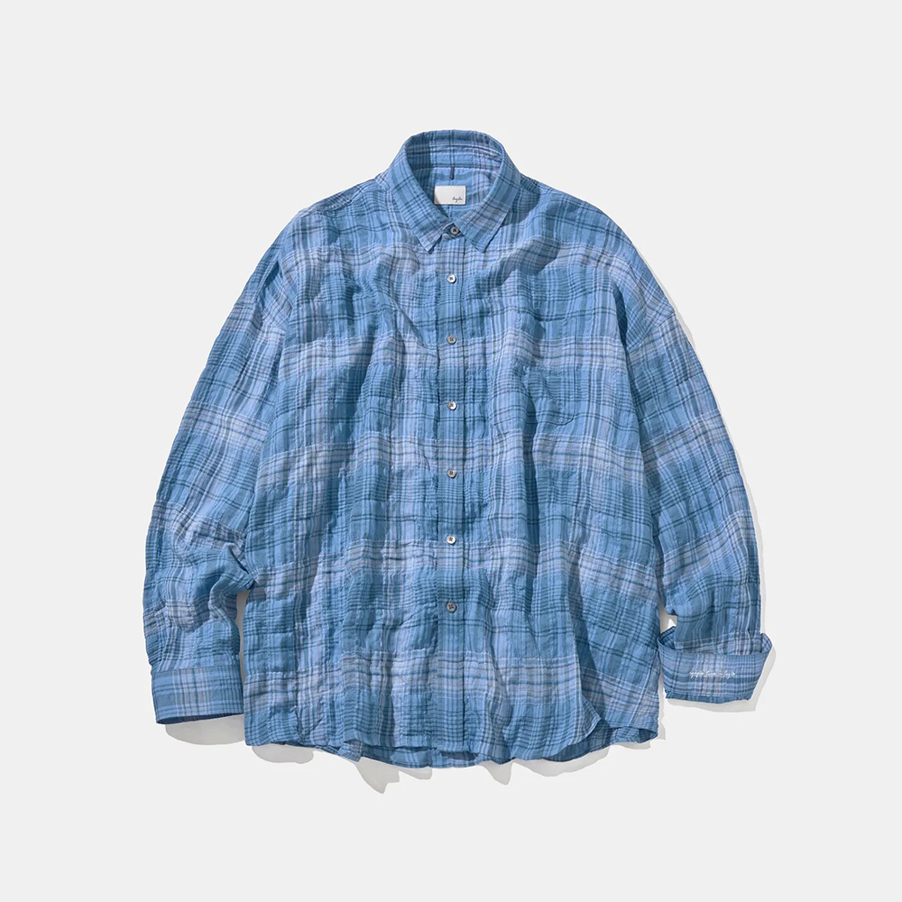 UV Crinkle Washed Deep Blue Check Shirt S172