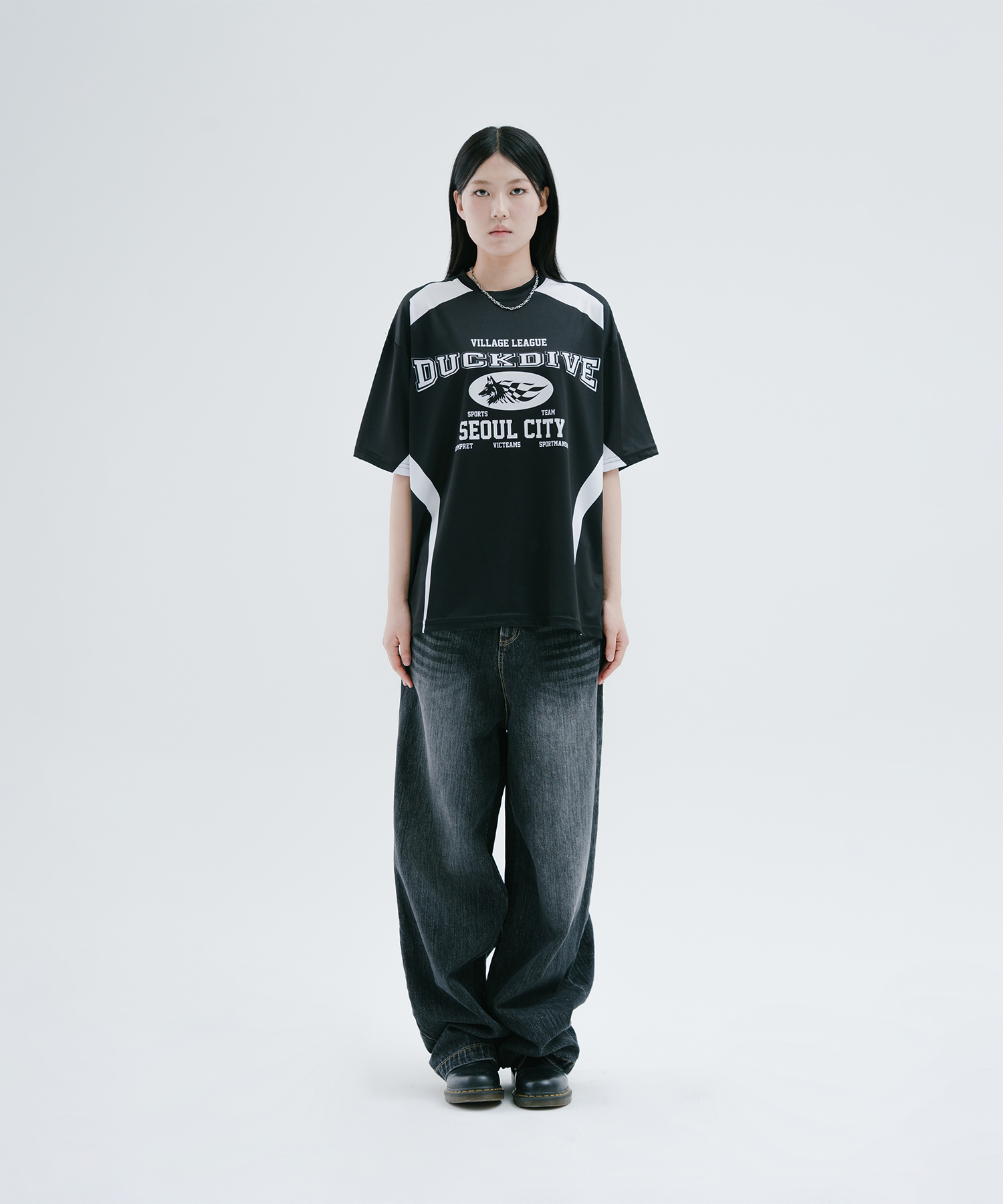 저스트 킵 러닝 풋볼 저지 오버핏 반팔 티셔츠
