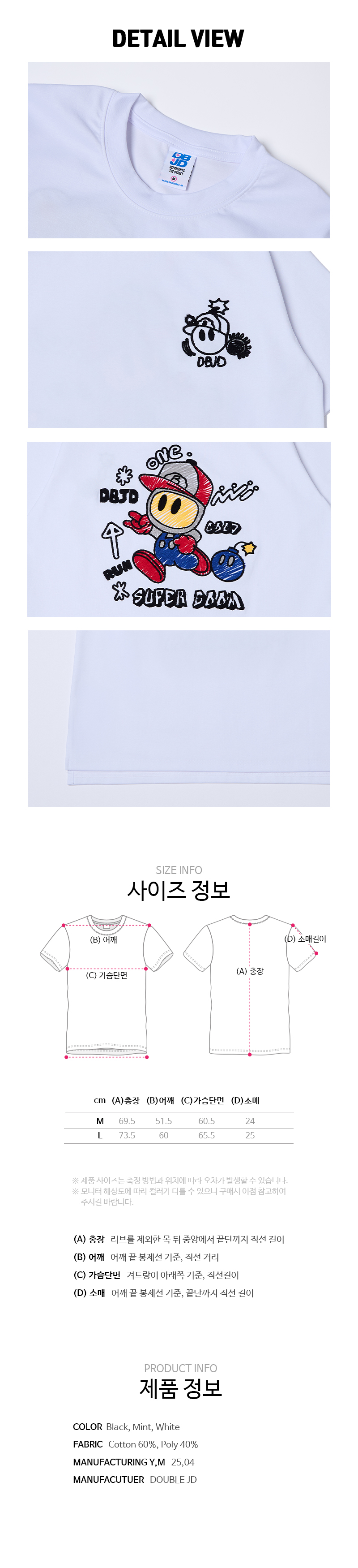 JUSTMOVE 저스트무브 화이트블랙 - 반팔티