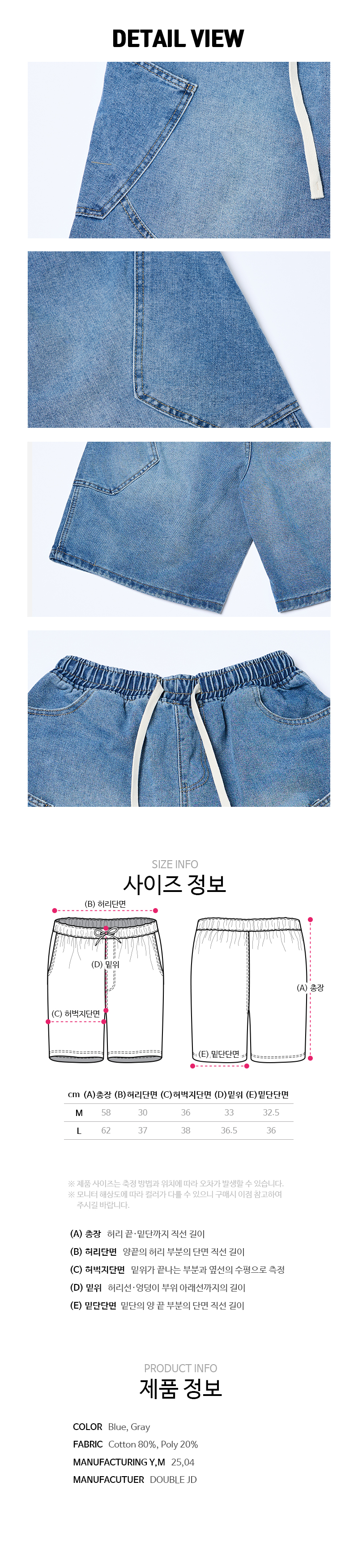 어른의 음료 소주의 컬러칩을 진하게 담은 데님 쇼츠입니다.