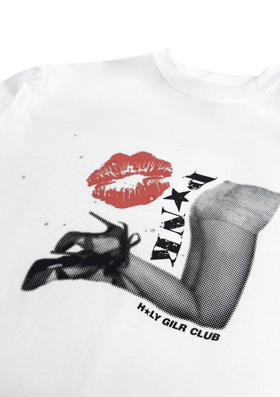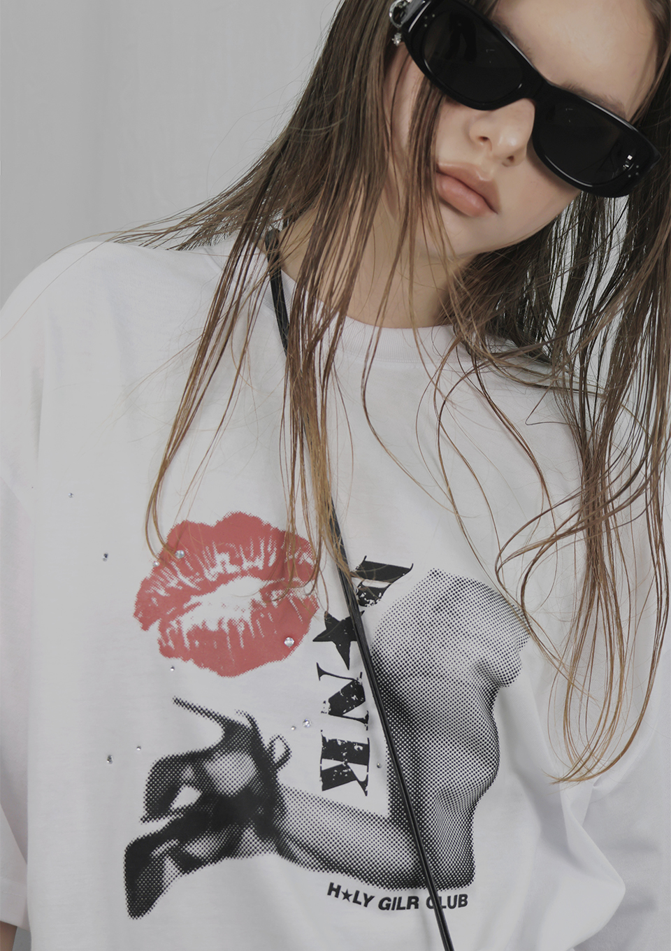- 빈티지하고 펑키한 무드의 그래픽 위에 핫픽스를 더해 스트릿 감성과 반짝이는 에너지가 담겨있는 제품입니다.