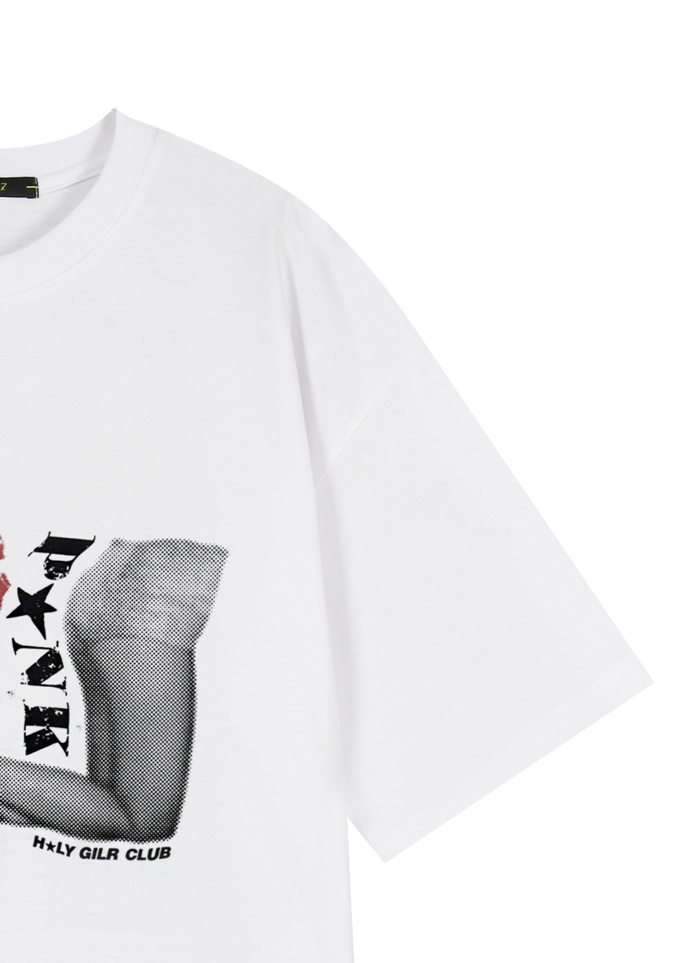 OVERSIZED HIP HOP DANCE STUDIO PUNK GRAPHICS SHORT SLEEVE T-SHIRT_WHITE
