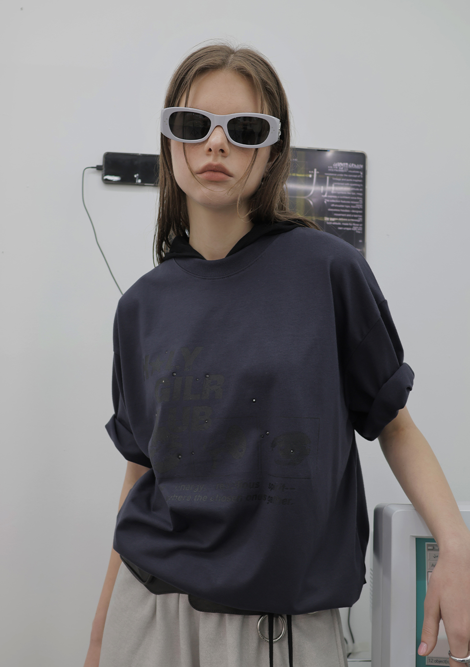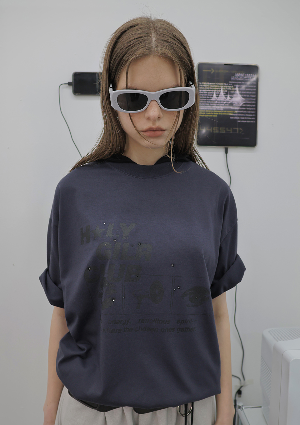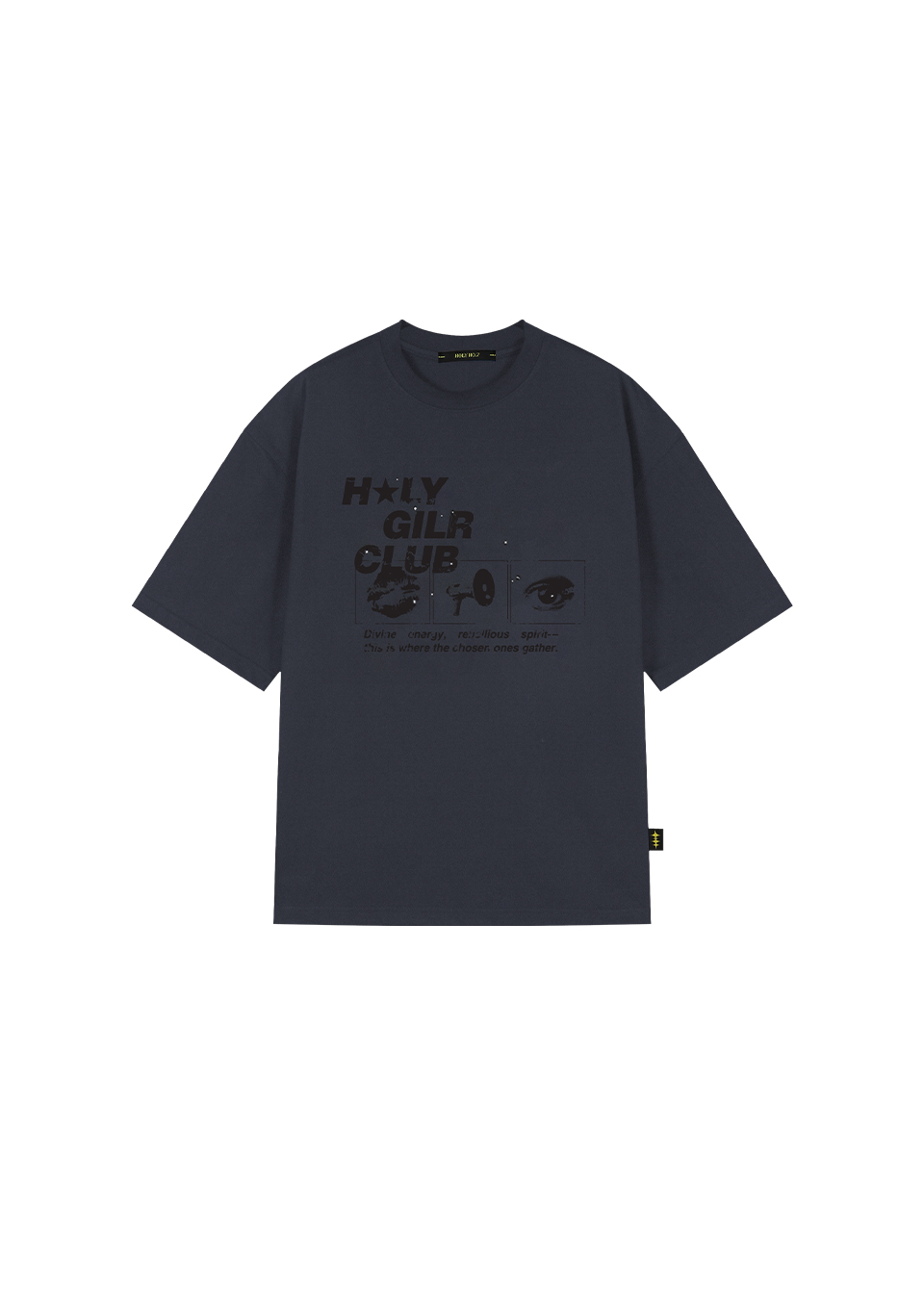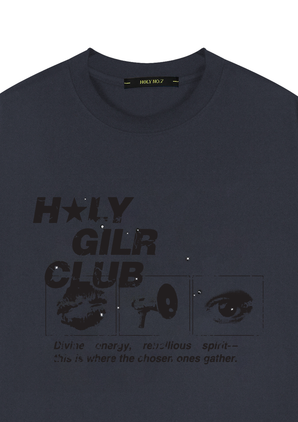 OVERSIZED HIP HOP DANCE STUDIO HOLY GIRL CLUB GRAPHICS SHORT SLEEVE T-SHIRT_CHARCOAL