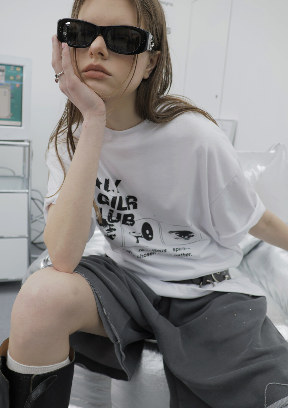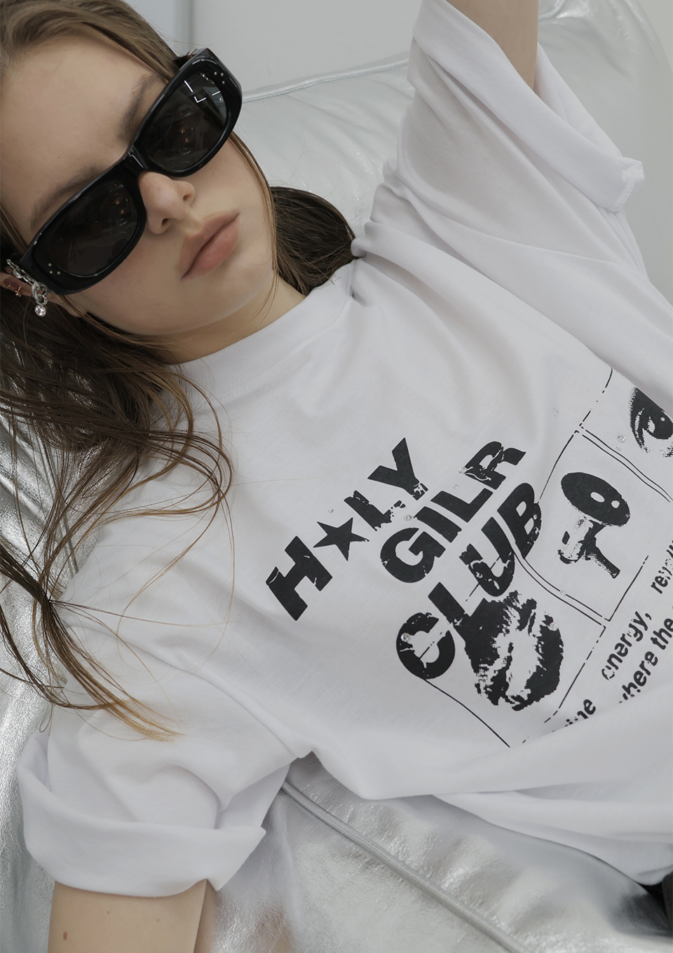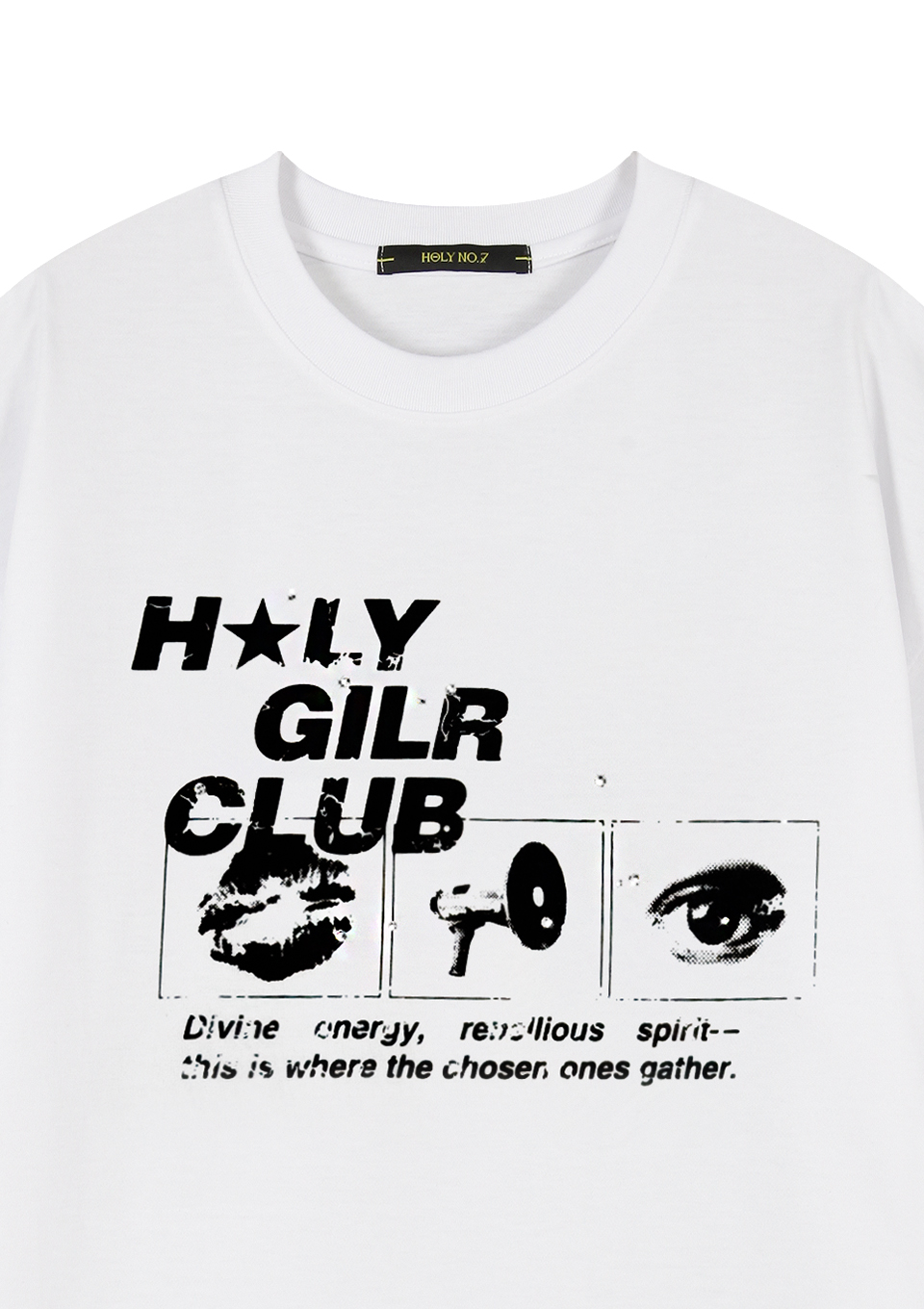OVERSIZED HIP HOP DANCE STUDIO HOLY GIRL CLUB GRAPHICS SHORT SLEEVE T-SHIRT_WHITE