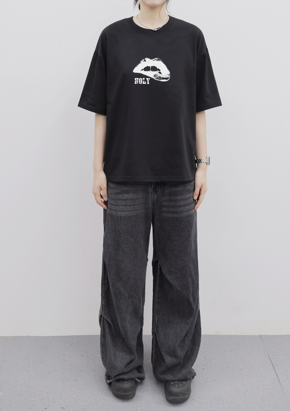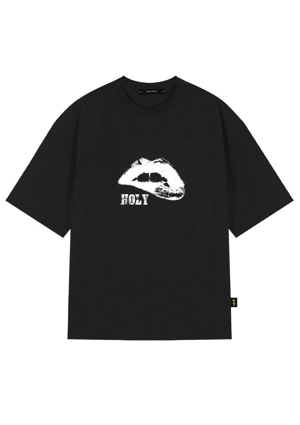 홀리 빈티지 입술 오버핏 반팔티_블랙