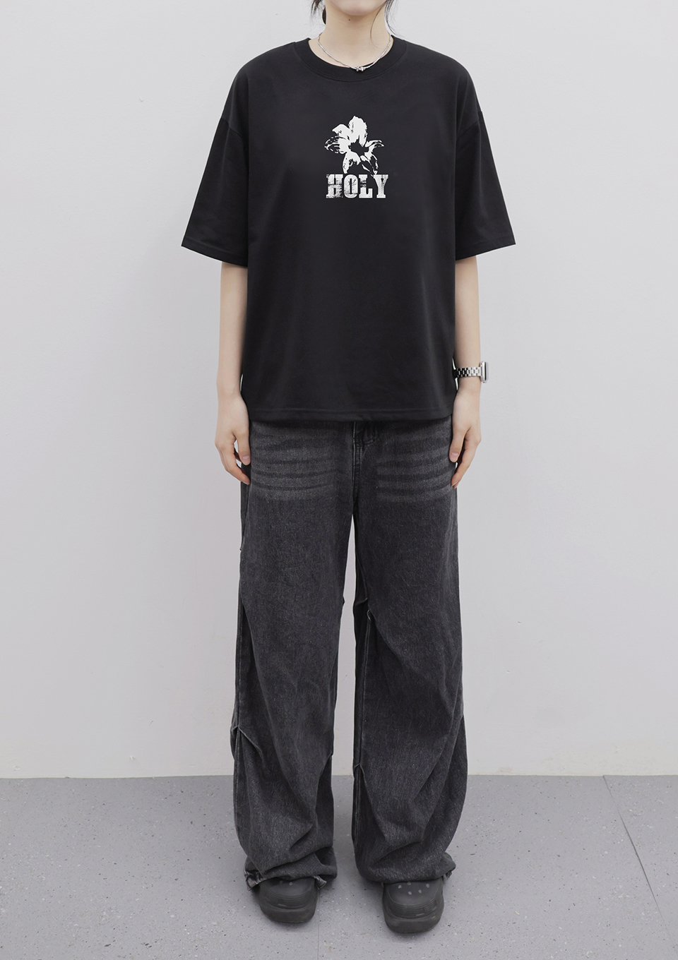 홀리 꽃한송이 오버핏 반팔티_블랙