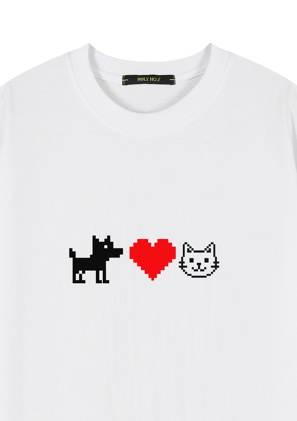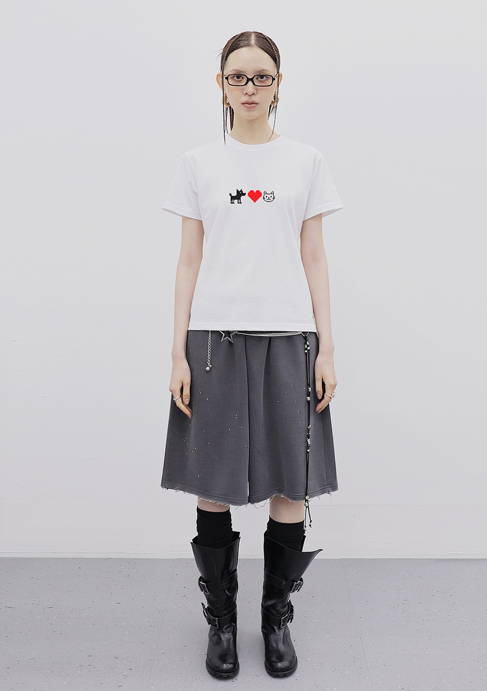 PUPPY HEART CAT SLIM FIT SHORT-SLEEVED T-SHIRT_WHITE