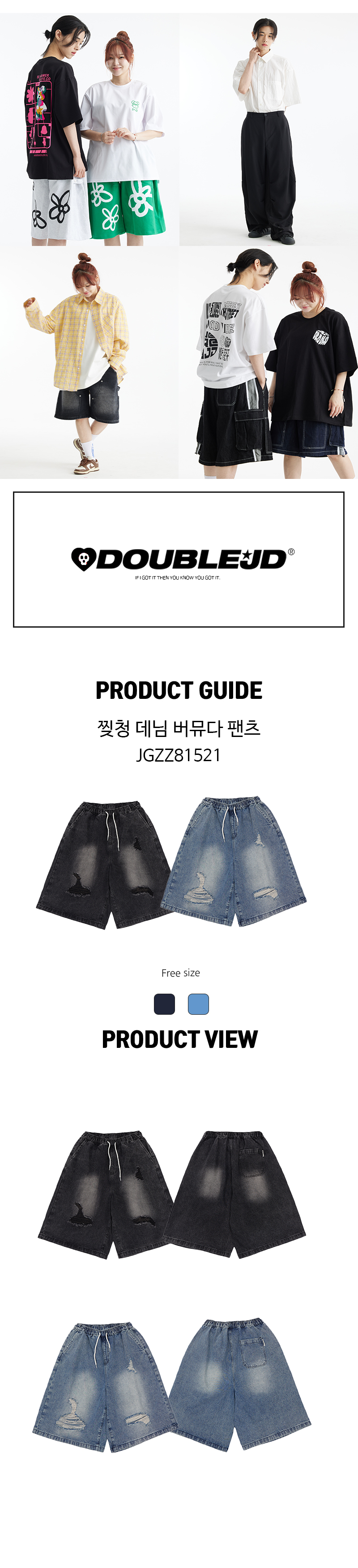 어른의 음료 알코올 진로의 컬러칩을 진하게 담은 데님 쇼츠입니다.