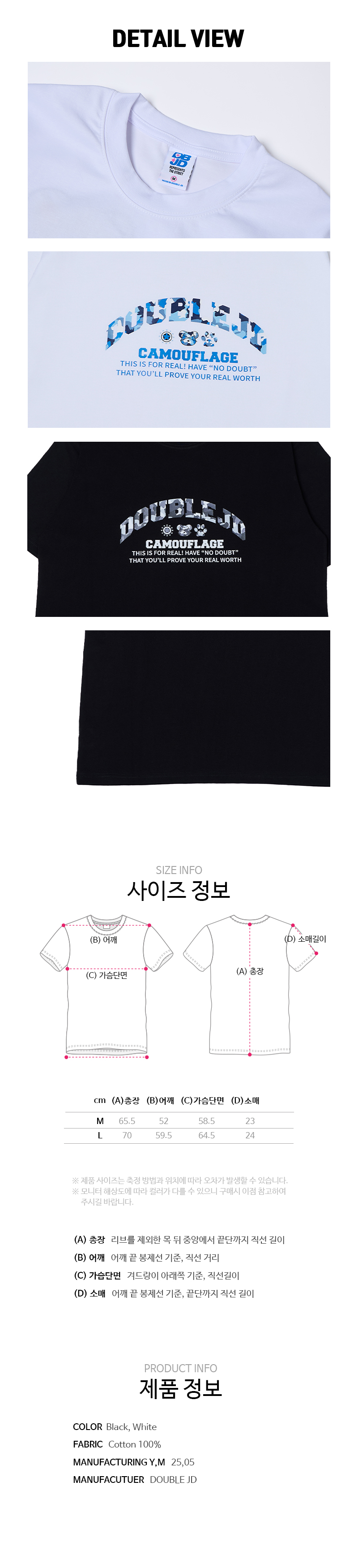 JUSTMOVE 저스트무브 블랙화이트 - 반팔티