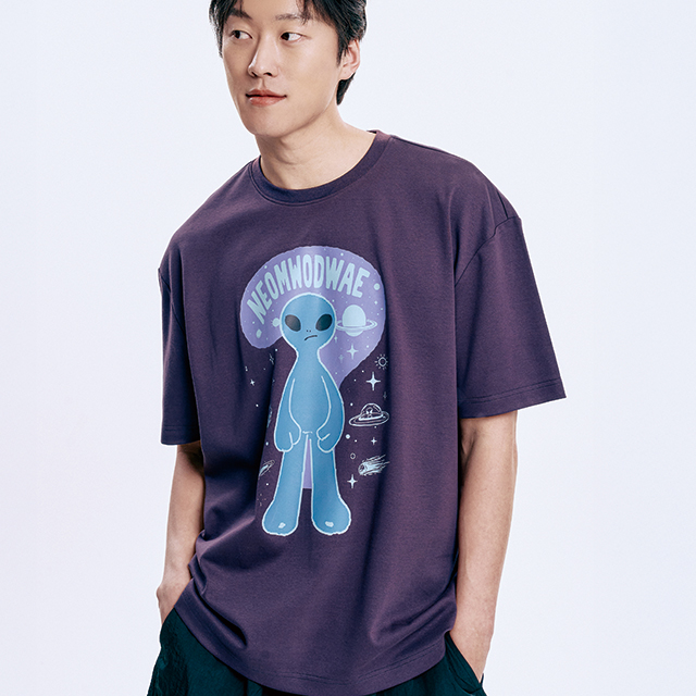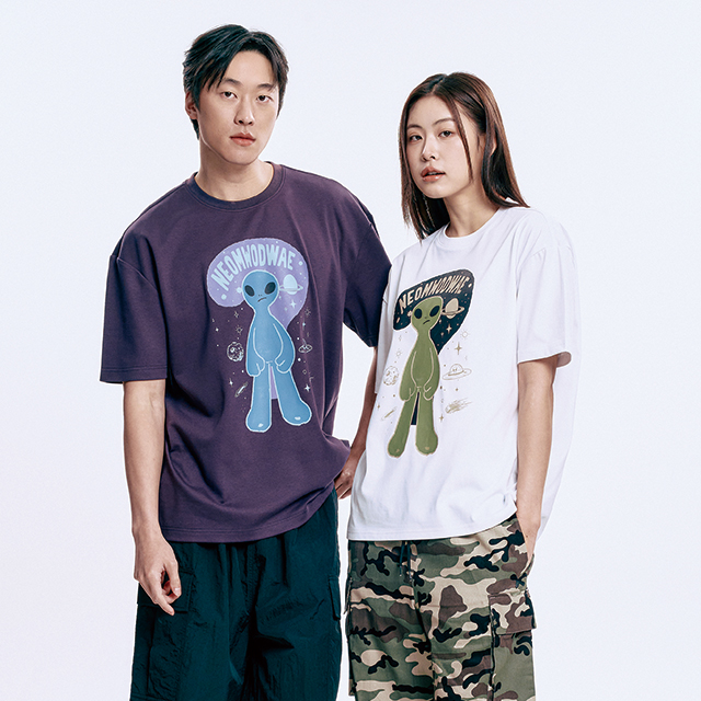 가벼운 소재로 그래픽이 특징인 스트릿 캐쥬얼 반팔티셔츠