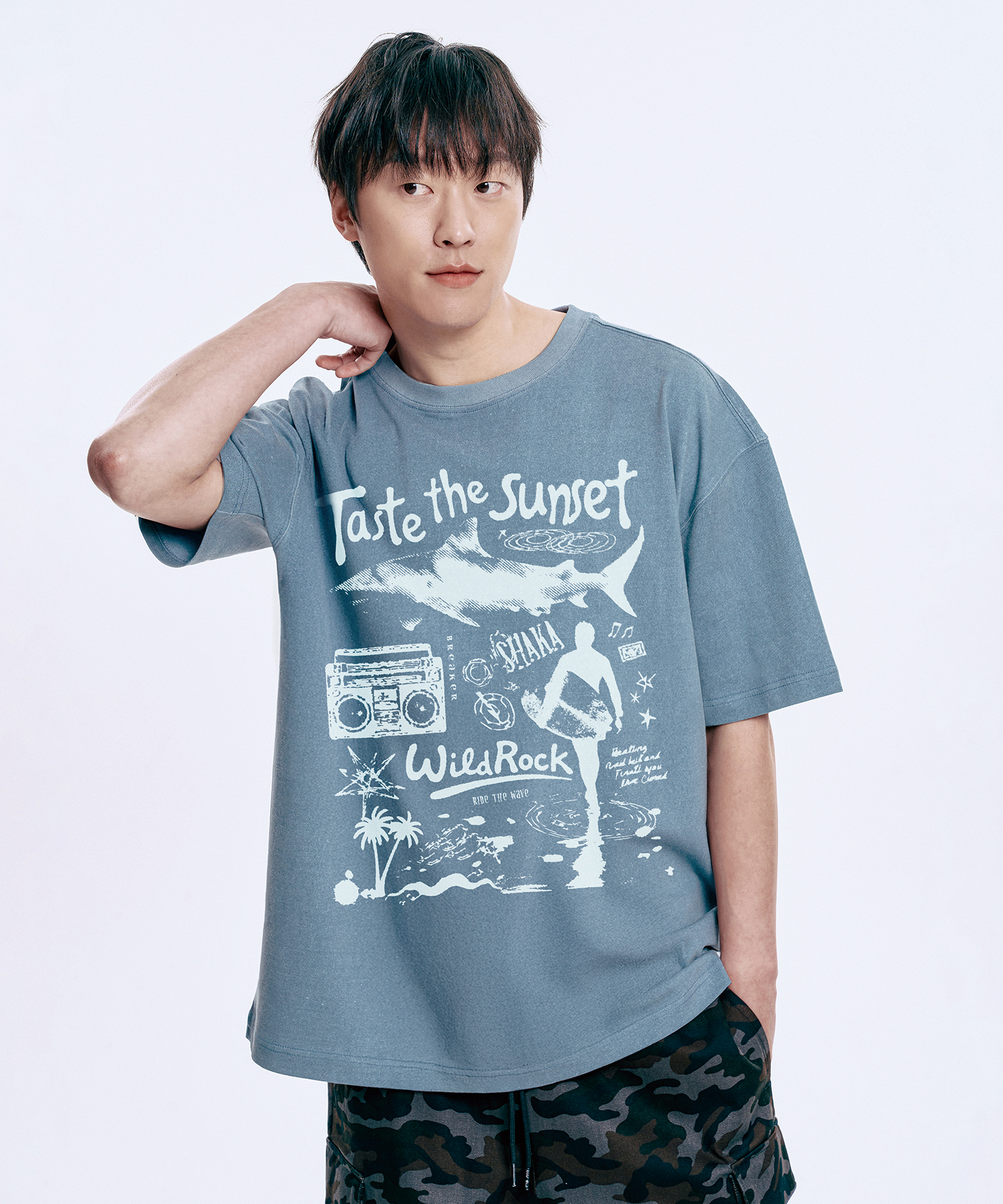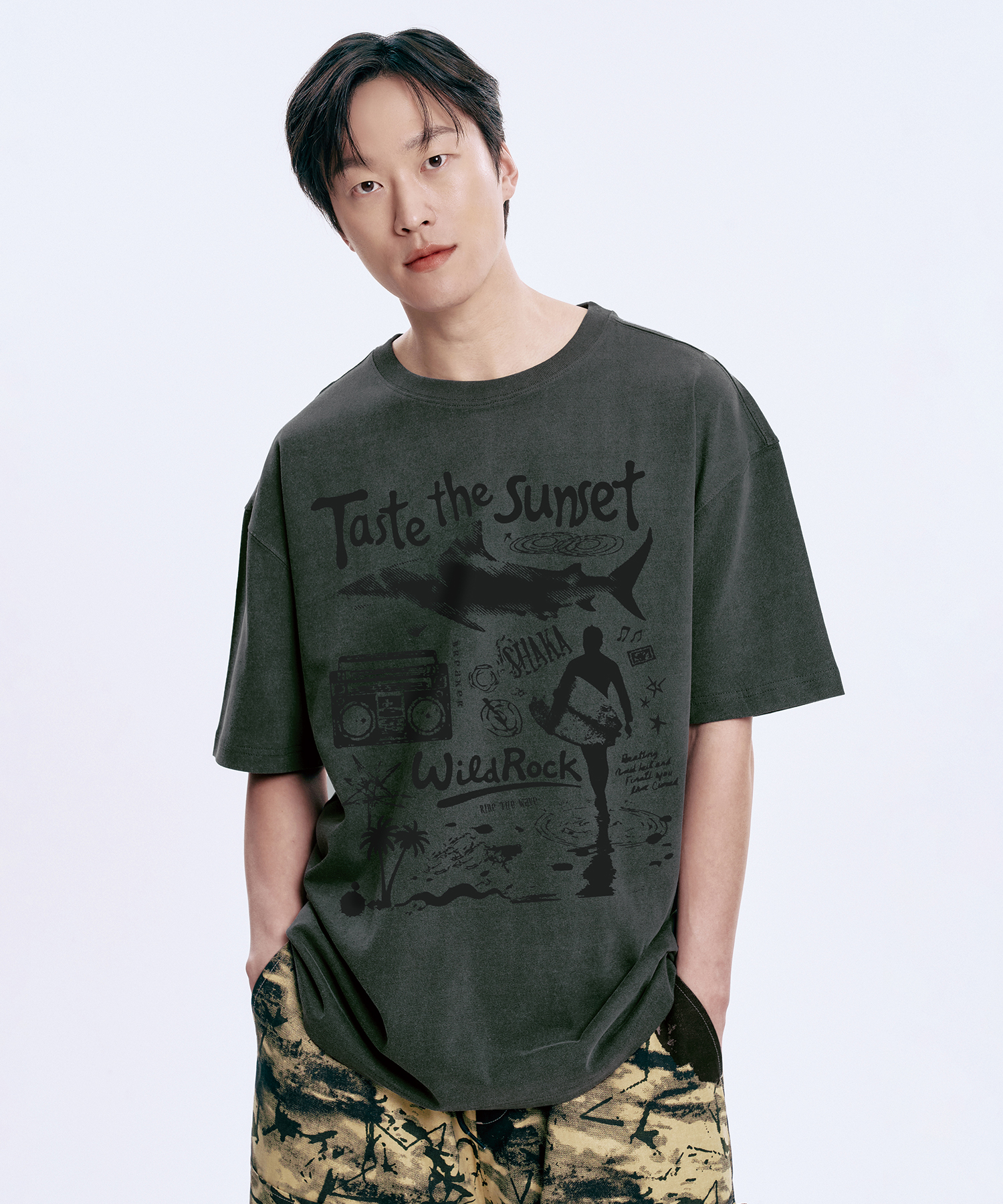 가벼운 소재로 그래픽이 특징인 스트릿 캐쥬얼 반팔티셔츠
