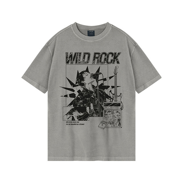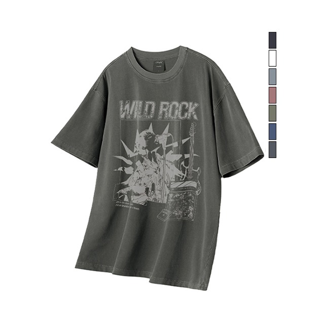 Wild 로큰롤 냥이 피그먼트 오버핏 반팔 티셔츠_7 COL