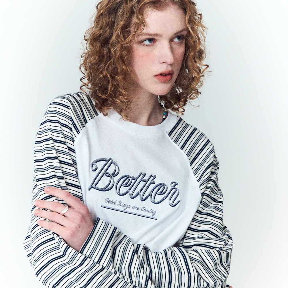리본체리 트랙 레글런 롱슬리브 멜란지화이트