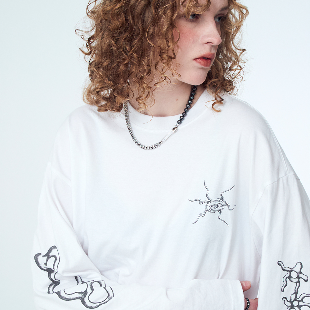 메탈 스웰링 그래픽 메쉬 롱슬리브