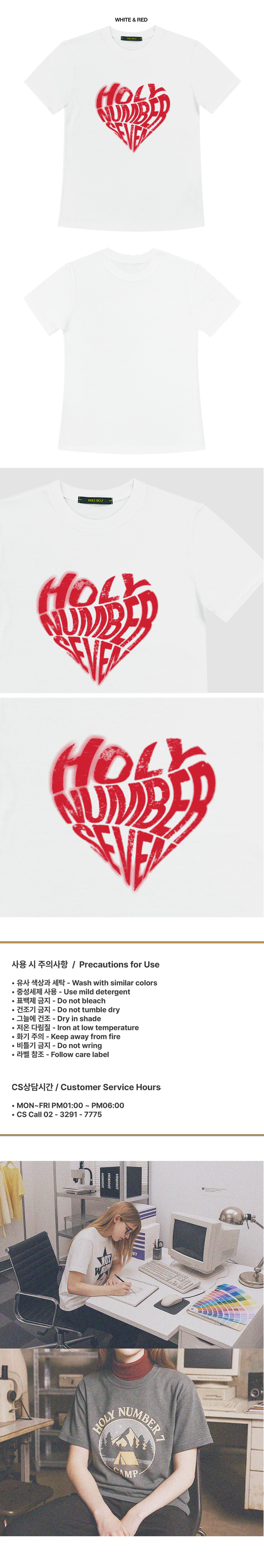 하트 그래픽 슬림핏 반팔티_화이트&레드