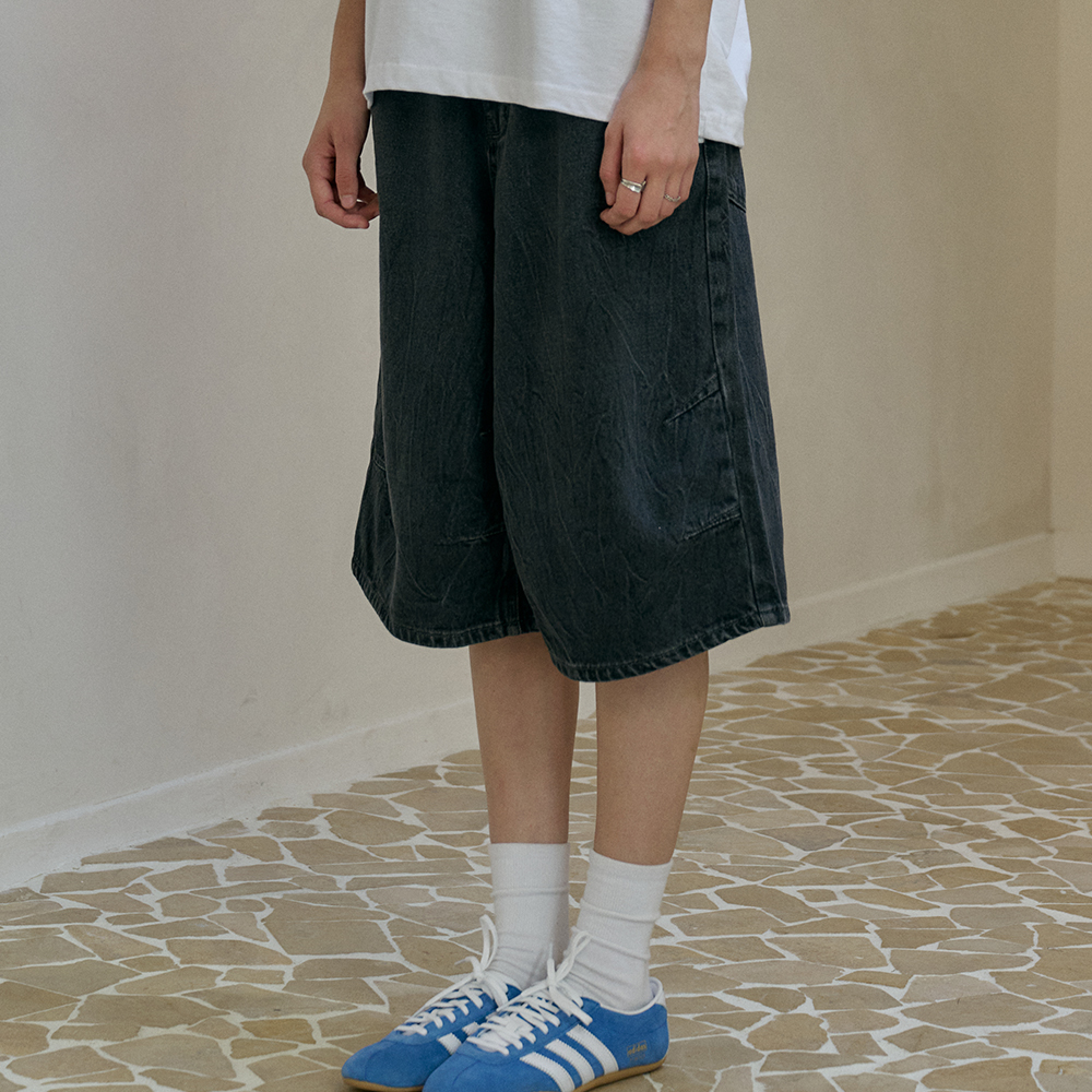 원 턱 버뮤다 리벳 데님 팬츠 블랙