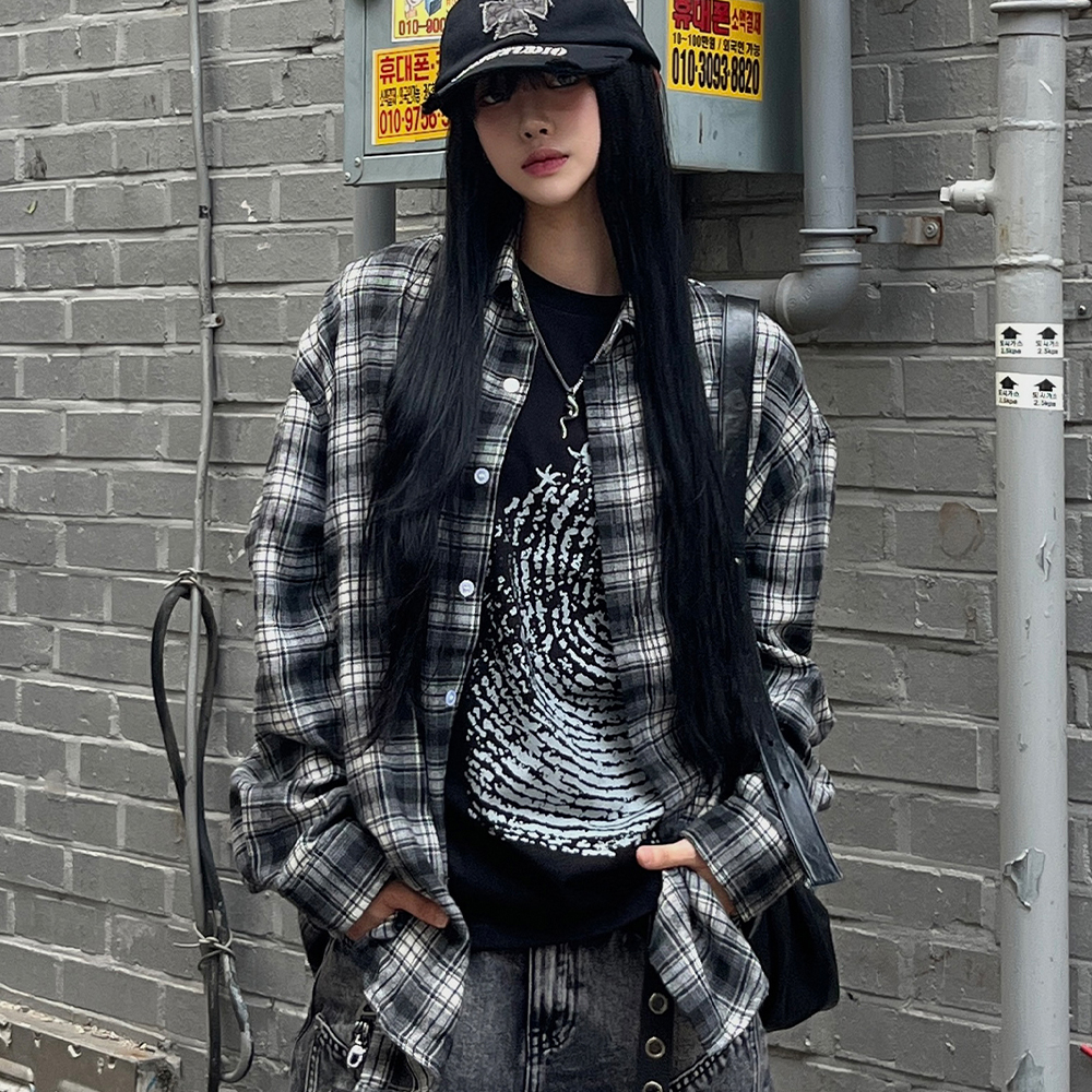 Crop Detachable Crease Check Shirt S167 Gray Achromatic