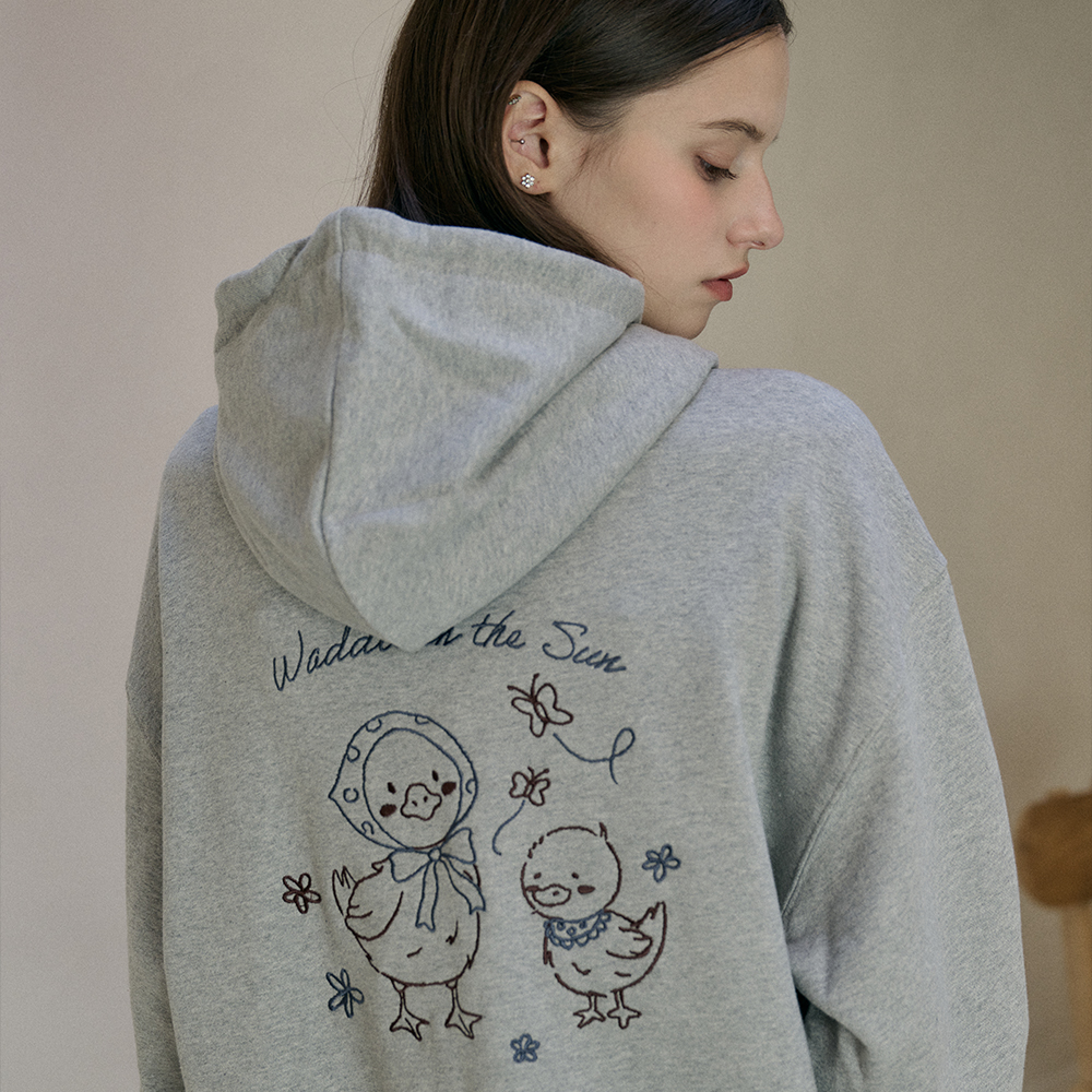 RIDING BIKE CAT 오버핏 후드 티셔츠 (멜란지 그레이)