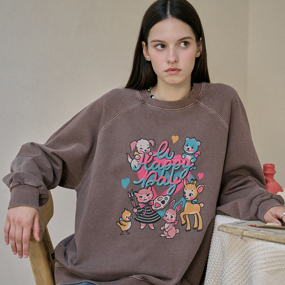 Magic Zoo 피그먼트 맨투맨 스모크블랙