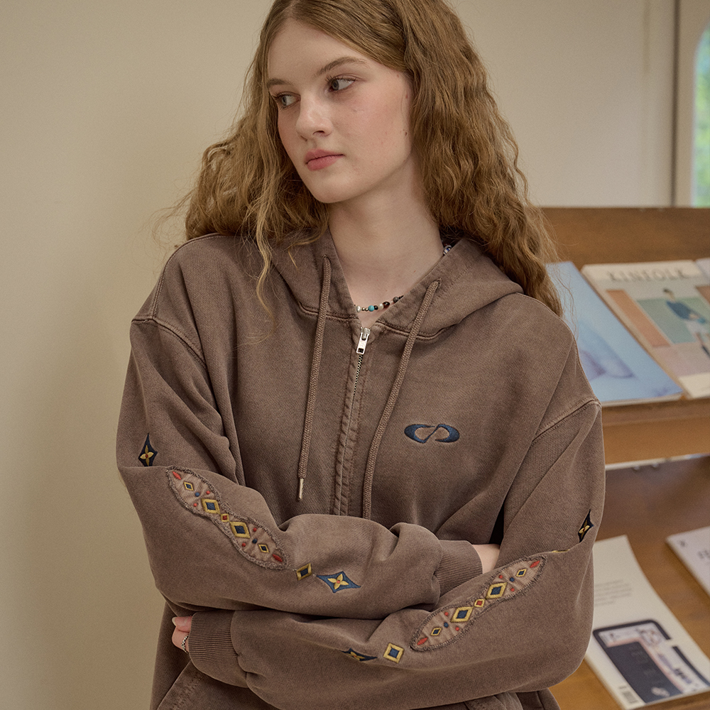 2-WAY 치마 슬리브 피그먼트 후드 집업 더스티핑크