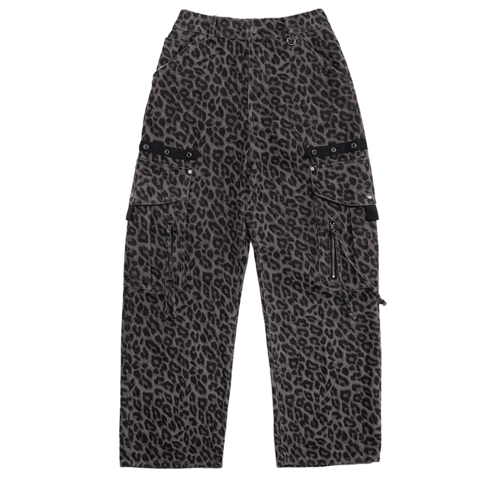 메쉬 원단,타이거 카모 패턴의 와이드한 핏의 조거 팬츠
