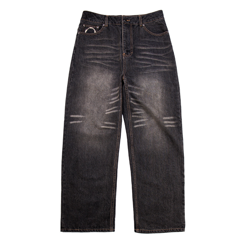 뒷주머니 지퍼 포켓이 포인트인 와이드 데님