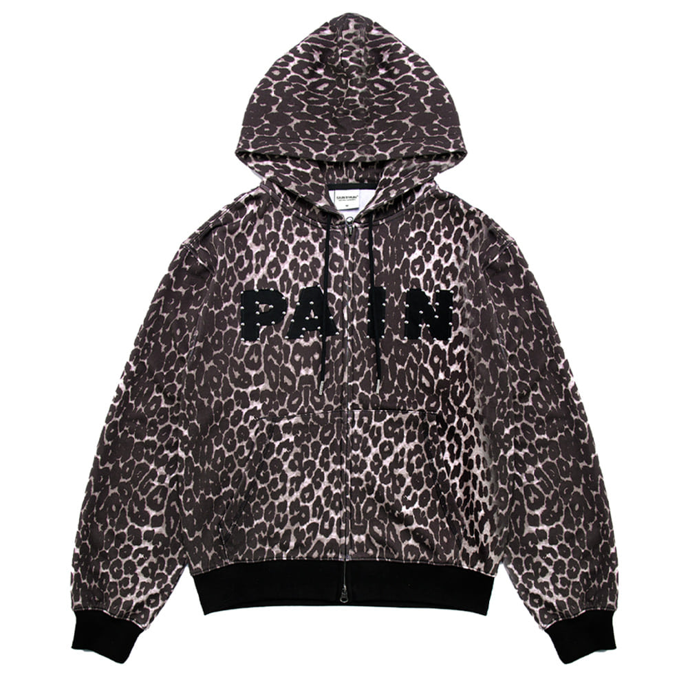 SP 레더 아플리케 카모 후드집업 블랙