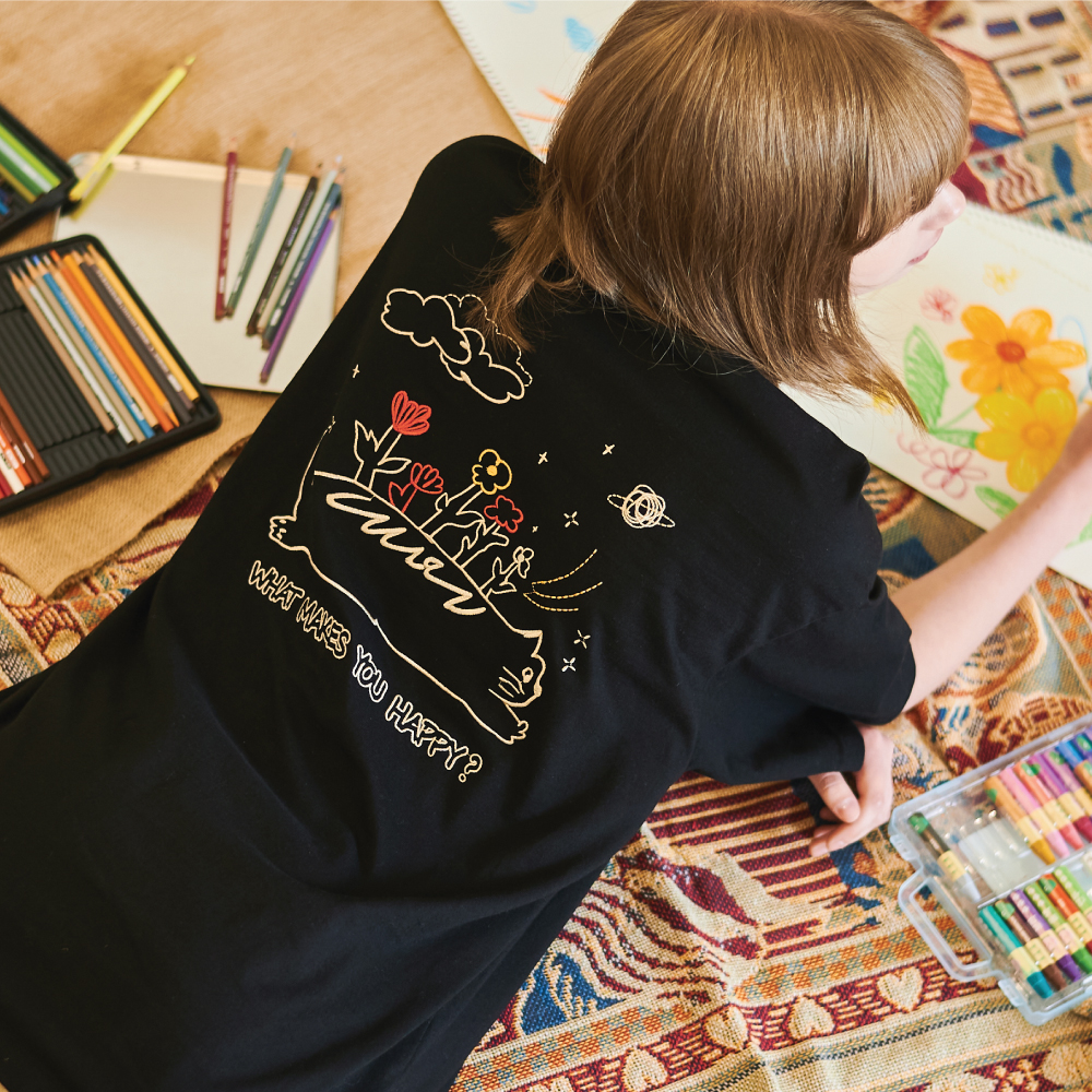 그래픽과 레터링을 전체 자수로 표현하여 작업된 디테일한 그래픽 디자인입니다.