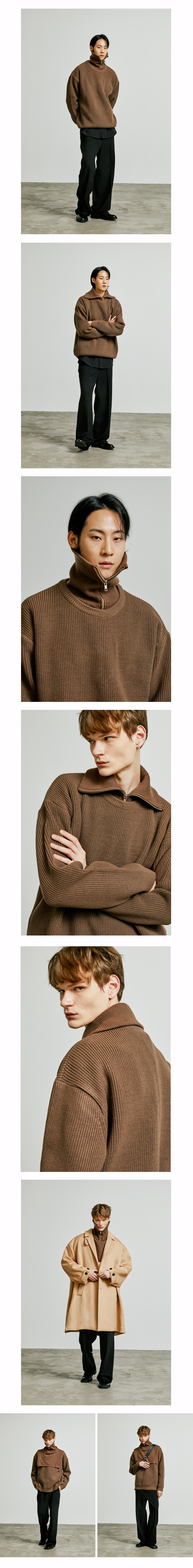 ツートーン スケルトンボーン ラウンドネック セーター_ブラウン