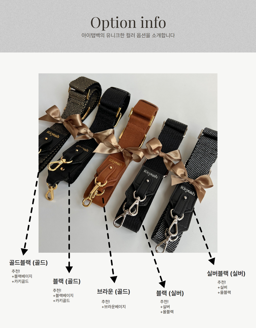 9가지 컬러의 STRAP중 원하시는 것 하나 무료제공! 크로스백으로도 활용가능한 토트백
