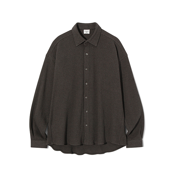 케이아스의 유니크한 느낌의 코팅 코튼을 사용한 오픈카라 셔츠입니다