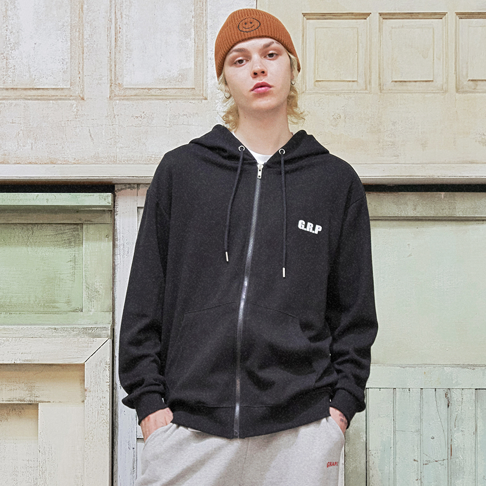 [2-WAY] KOKO 아플리케 피그먼트 후드 집업 스모크블랙