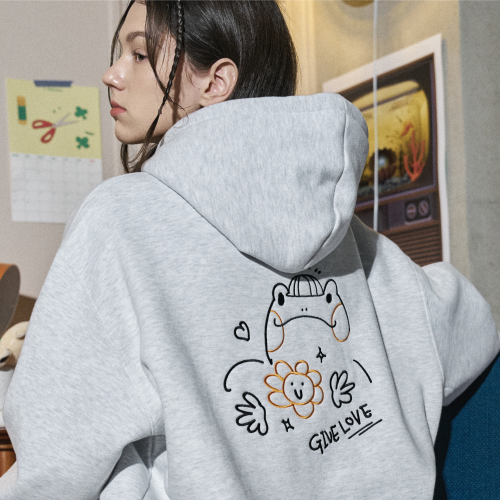 그래픽과 레터링을 전체 자수로 표현하여 작업된 디테일한 그래픽 디자인입니다.