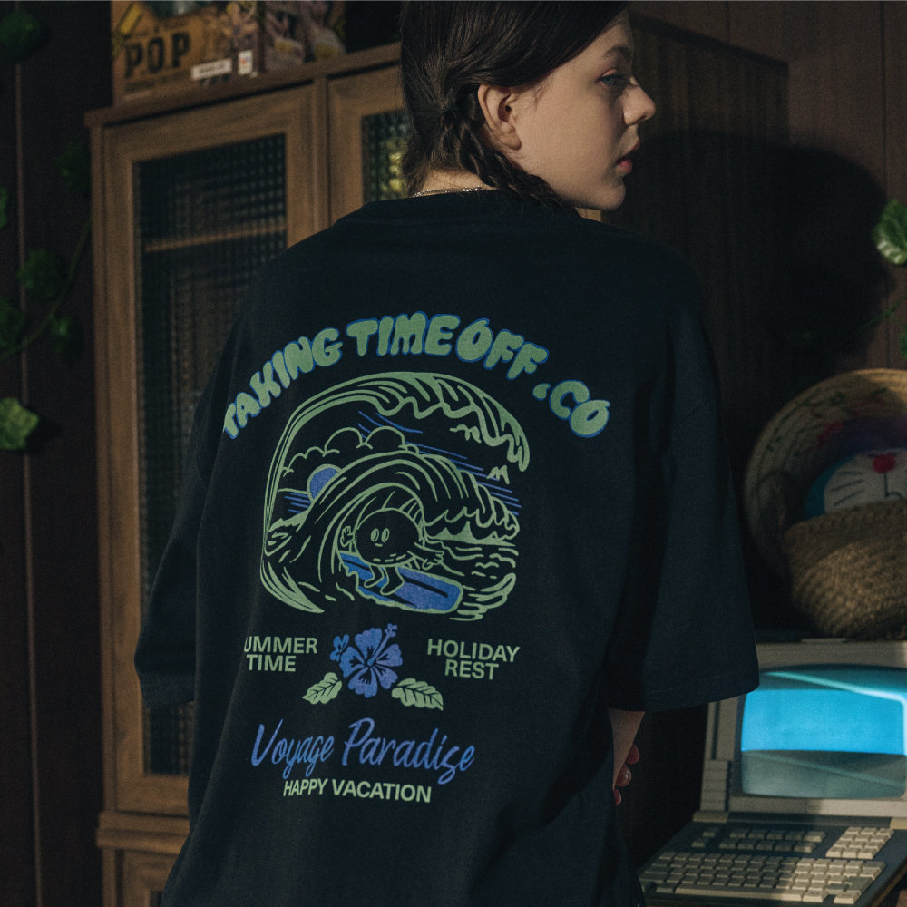 가벼운 소재로 그래픽이 특징인 스트릿 캐쥬얼 반팔티셔츠