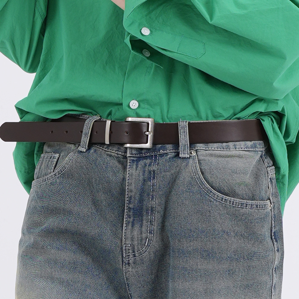 ミラー・ブラック・ニッケル・スクエア・バックル・フルグレイン・レザー・ベルト・ブラウン