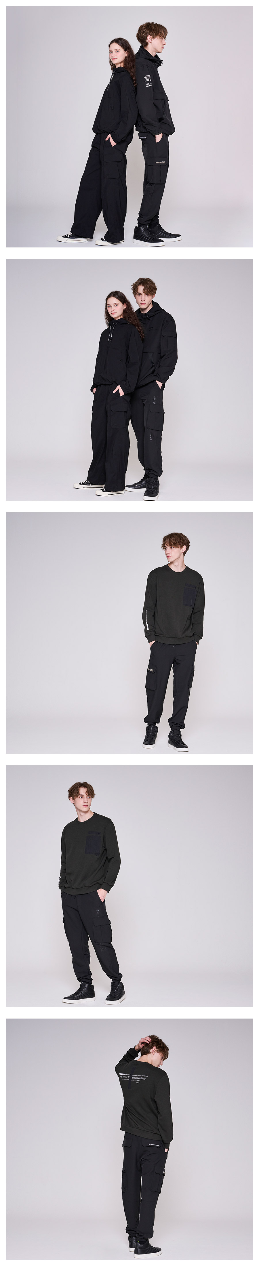 메쉬 원단,우드랜드 패턴의 와이드한 핏의 조거 팬츠