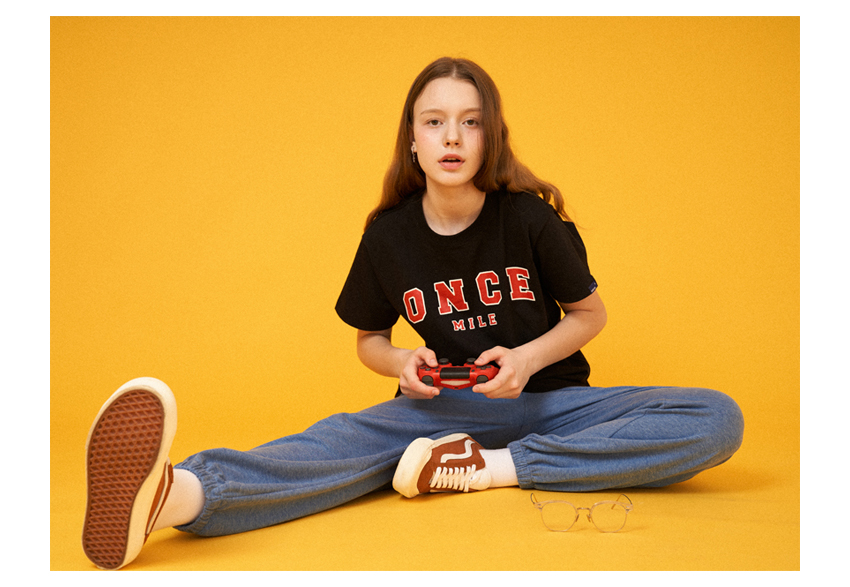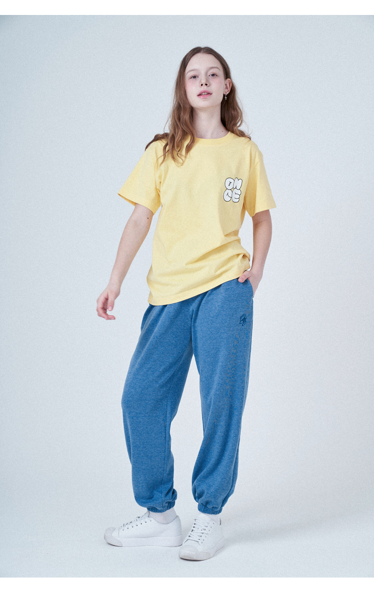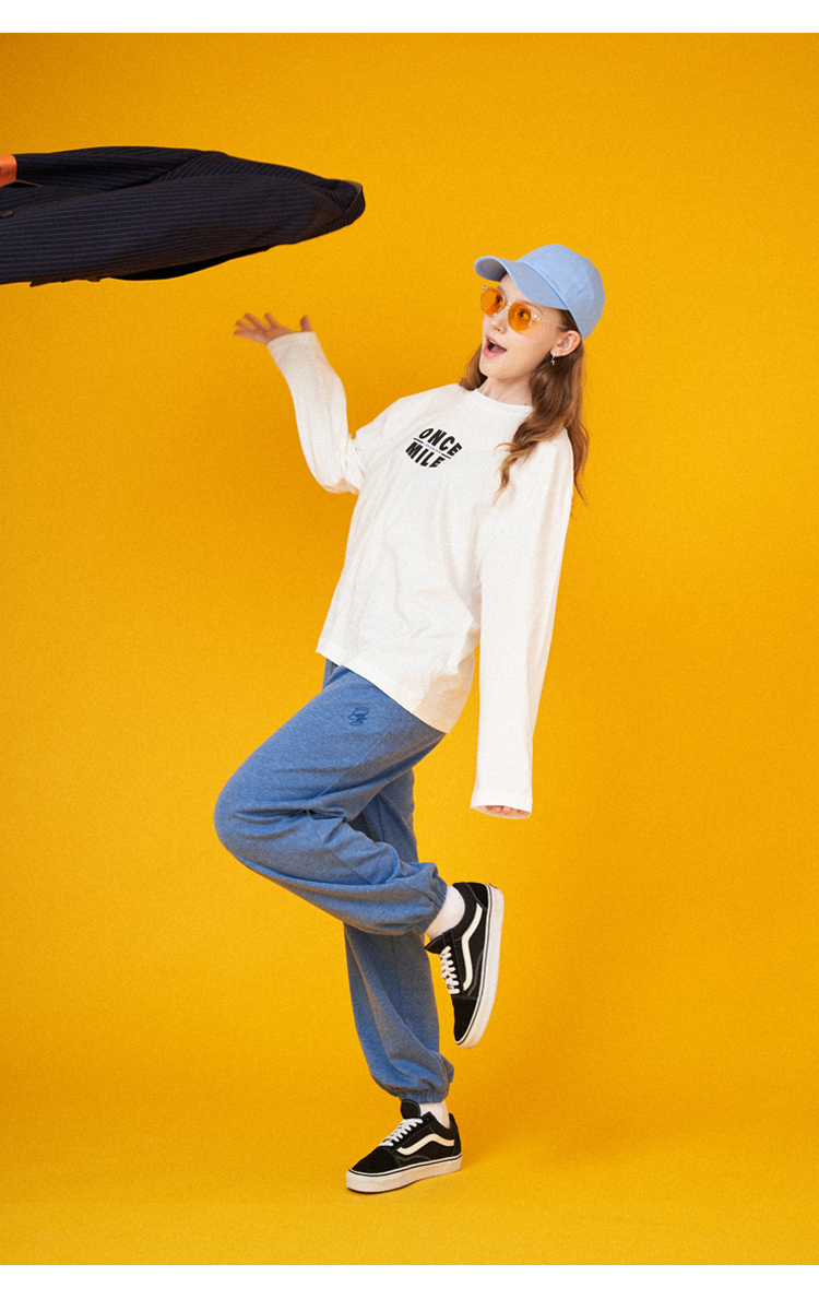 메쉬 원단,심플한 레터링의 와이드한 핏의 조거 팬츠