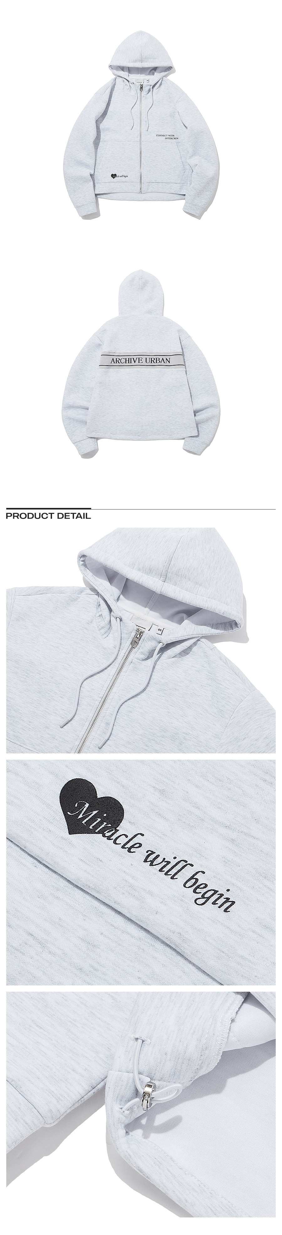 리사이클 소재의 세미크롭 기장 크롭 후드 집업