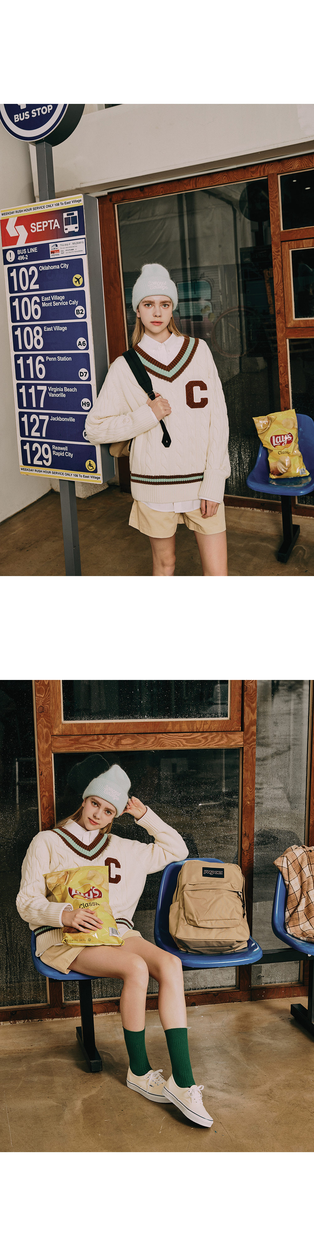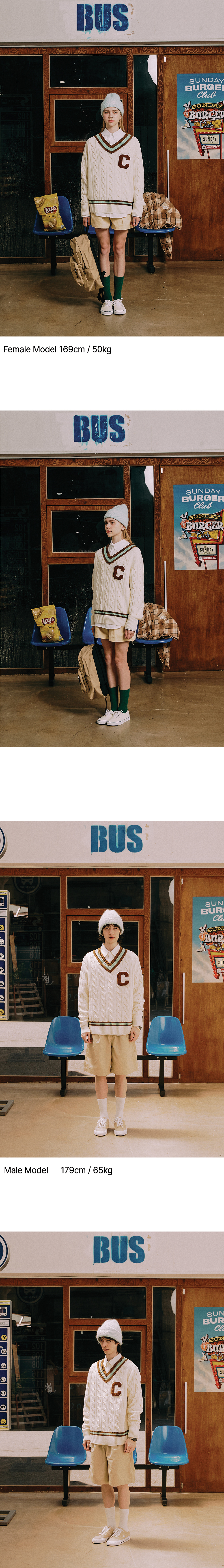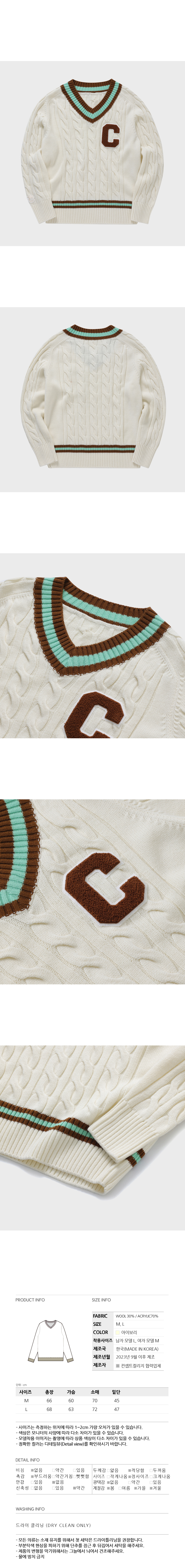 ブラウン Cパッチ ミントライン アイボリー Vネックニット(ユニセックス)