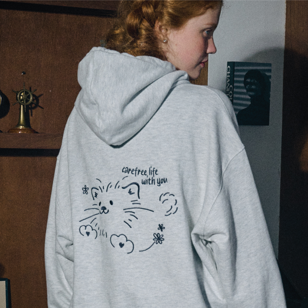 STAR CAT 오버핏 후드 티셔츠[메란지]