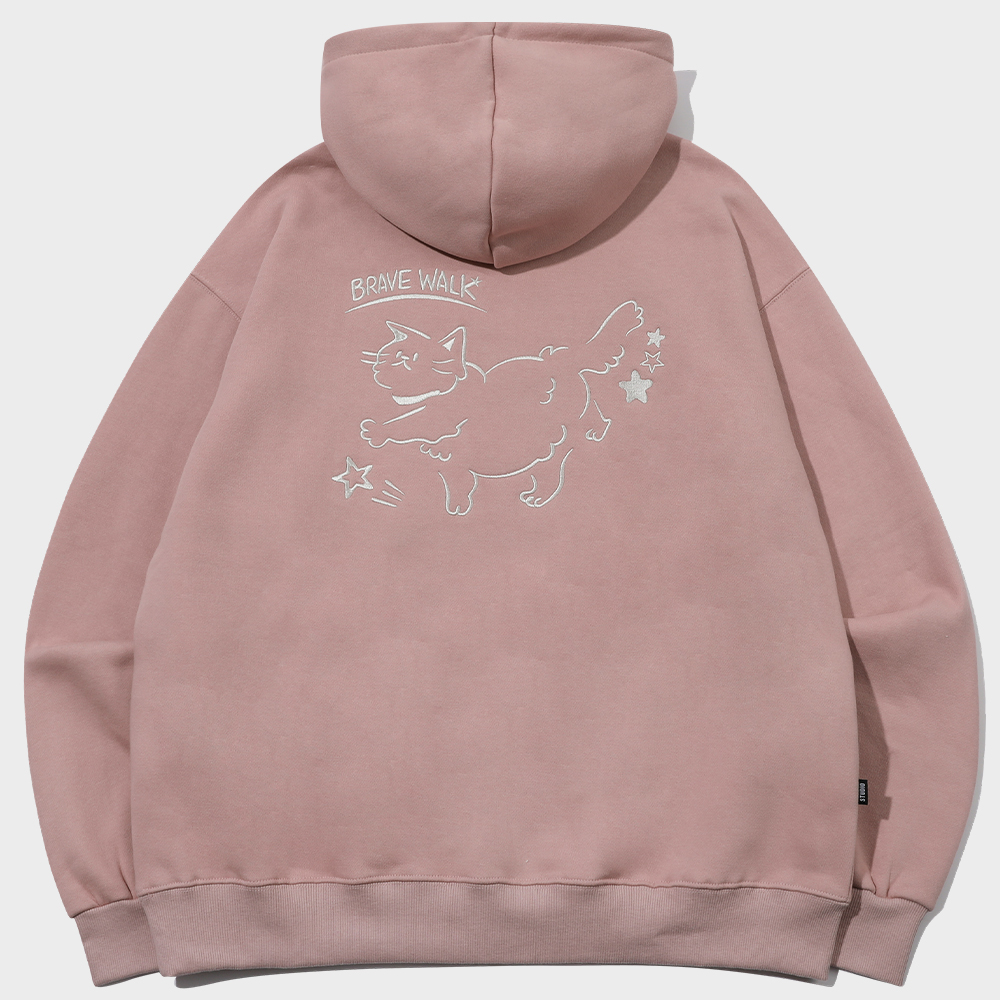 RIDING BIKE CAT 오버핏 후드 티셔츠 (와인)