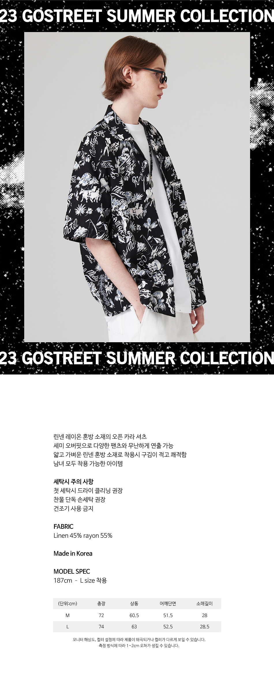 린넨 & 코튼 소재의 스트라이프 테일러 칼라 1/2 셔츠