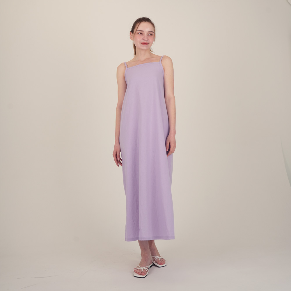 린넨소재의 여름 바캉스룩으로 백오픈 디자인의 홀터넥드레스