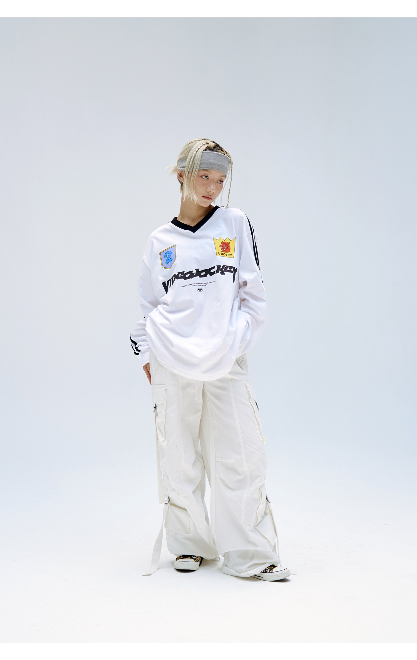 シースルー レタリング ルーズフィット 長袖Tシャツ(ホワイト)